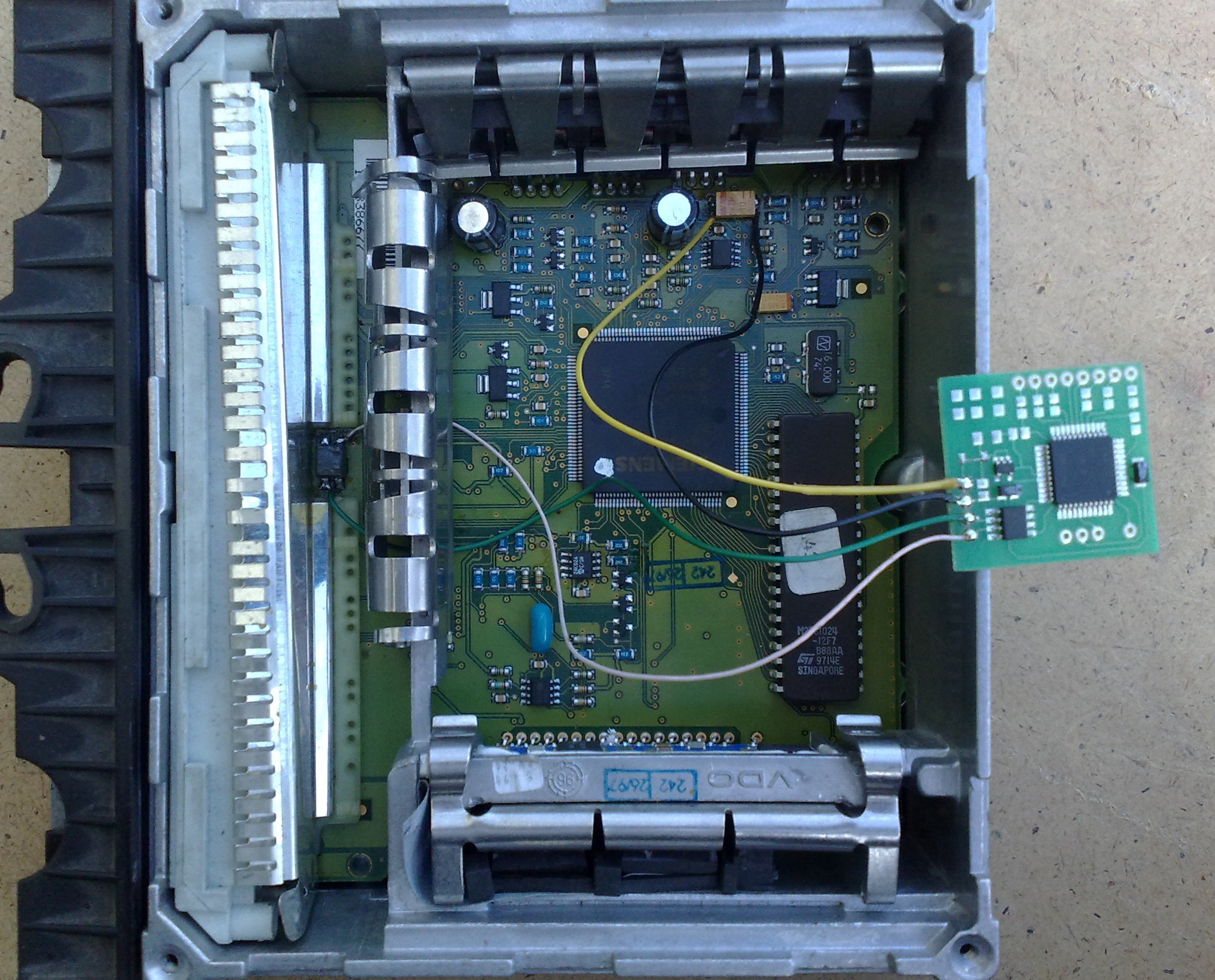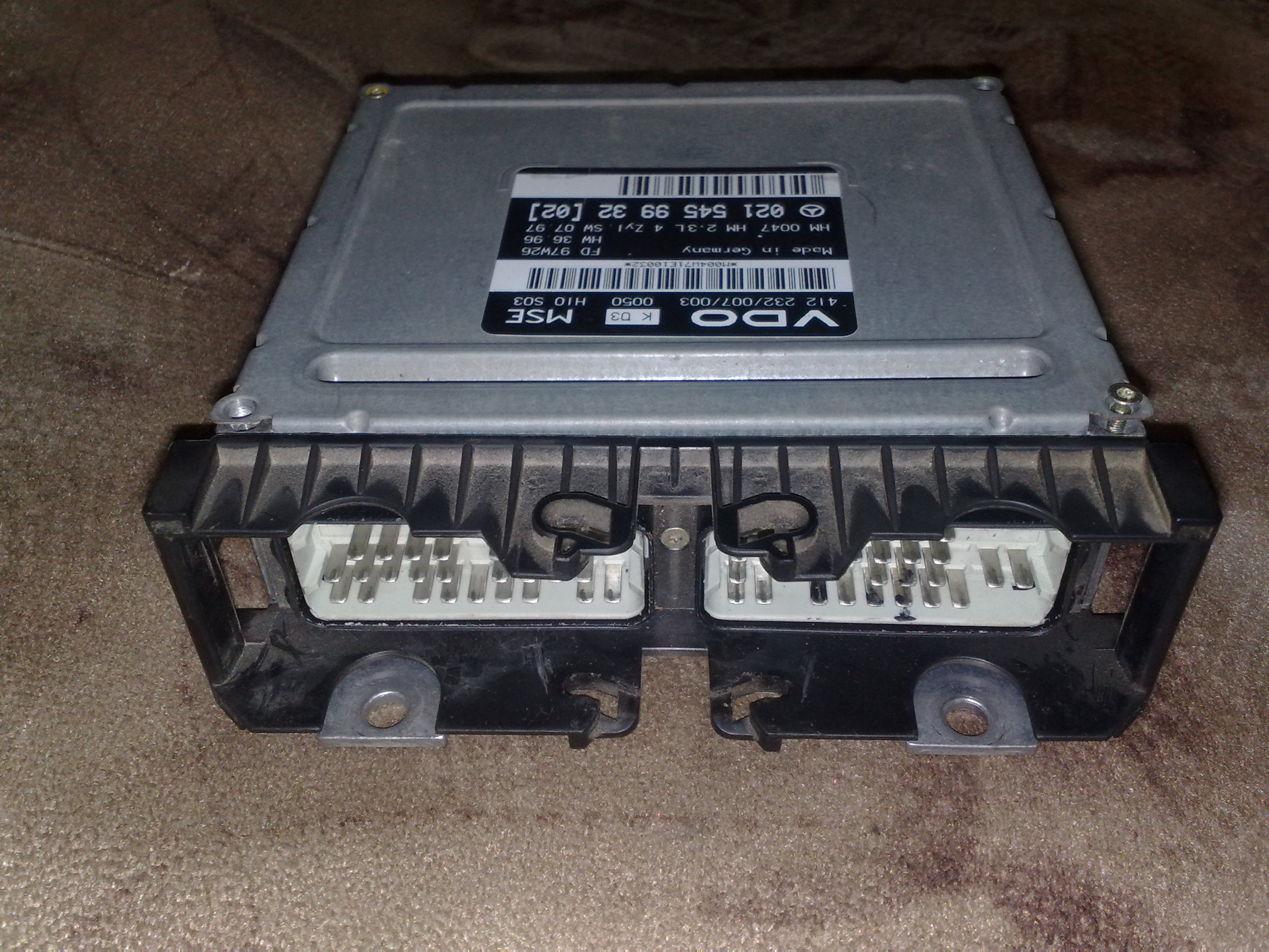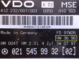 Применялся на 4 и 6 цилиндровых бензиновых моторах 111,104 примерно в 1992-96 году. Существует несколько модификаций этого блока, в том числе и без иммобилайзера. Иммобилайзерный блок и безиммобилайзерный, несовместимы по подключению. И требуют переделки проводки для работы. Кроме того версии блоков до 96 года имели скорость CAN 125kbit, а все последующие, по сегодняшний день - 500kbit . Провести четкую границу перехода довольно сложно, но блоки отличаються расположением микросхемы памяти и ее содержимым. Кроме того эмулятор поддерживает переключение скорости CAN. Вот в частности фото наклеек двух конкретных блоков со скоростью CAN 125kbit и 500kbit