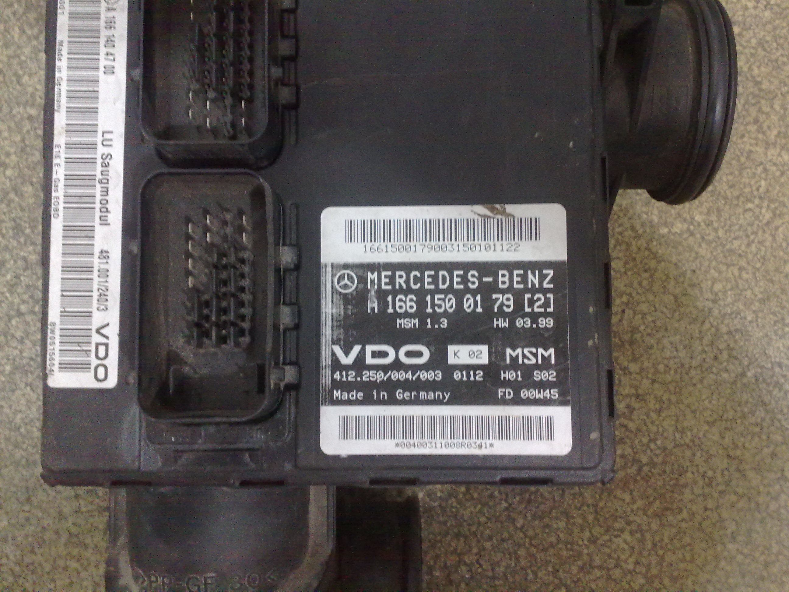 Для Мерседеса А Класса с бензиновым мотором, существовал блок управления MSM 2.0. Из системы убрали расходомер воздуха и применили датчик давления. Но инжинеры,любители экзотики, остались верны себе. Блок конструктивно объеденили с корпусом дроссельной заслонки. Разбирать такой блок пока не приходилось. Но особых неожиданностей ждать не стоит.